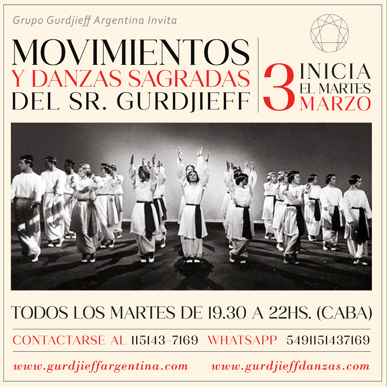 Presentaciones públicas de las Danzas Sagradas de Gurdjieff, un trabajo de atención y presencia en movimiento.